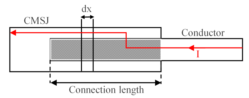 In the contact area, a current transfer from the conductor to the CMSJ takes place, which depends on the respective resistance per unit length of the contact partners and
