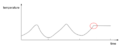 In the instant marked in red an anomalous situation alert is triggered since temperature measurement over time (becoming constant) breaks all preceding cyclical patterns. These algorithms perform time series modelling of past data, extract model forecast on actual data and compares forecasts with actual values. Such comparison is used to compute an anomaly score.