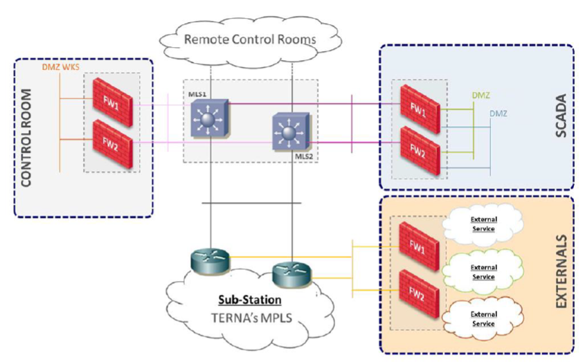 In particular, the electrical substations are segregated from the control system, the SCADA's and the control room systems, by Cybersecurity devices. Access rules and application controls system are implemented on these devices.