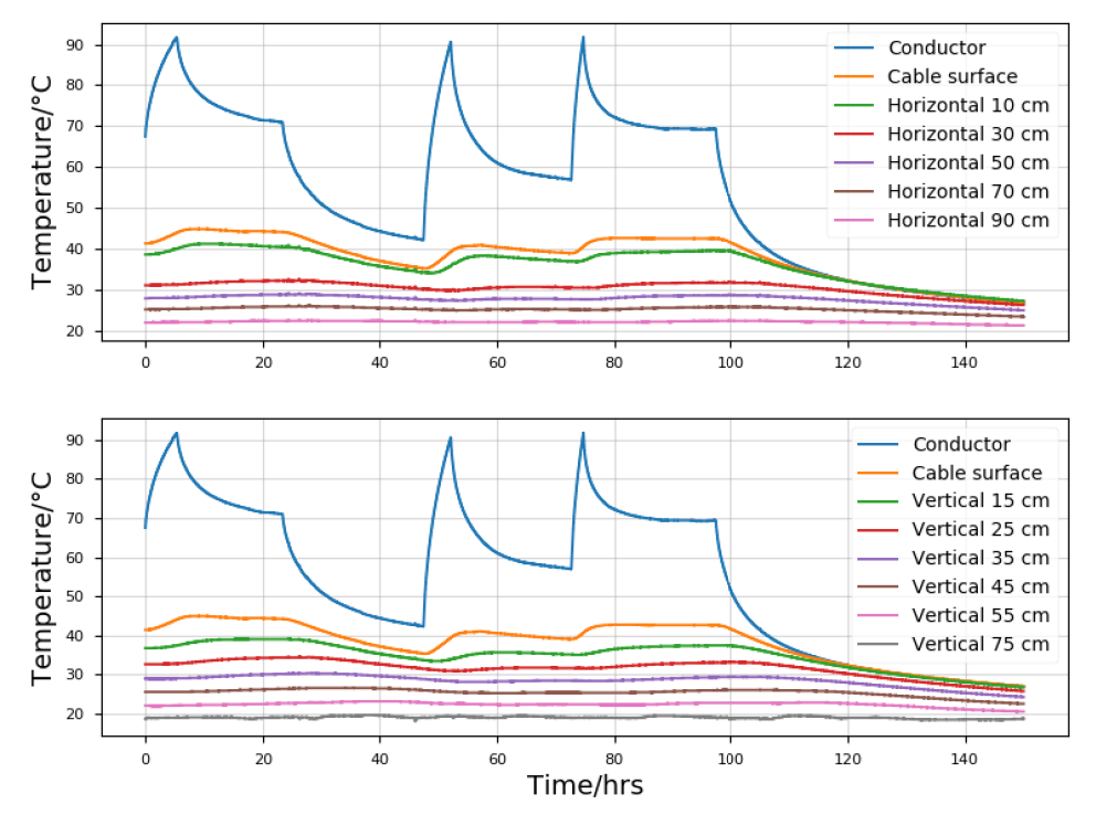 - Measure the thermal transient response of a buried three-core submarine cable