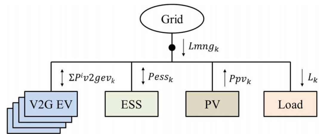 Figure 3 - V2G EV-MG configuration for optimization formula