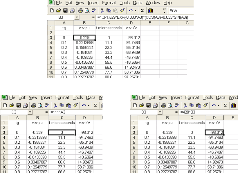 The Excel calculation is shown in Fig. 5 and is plotted in Fig. 6. Note that having the neutral reactor adds 0.6 pu to the TRV peak value and a good practice is to bypass the neutral reactor with a single pole disconnect switch prior to switching out the main reactor.
