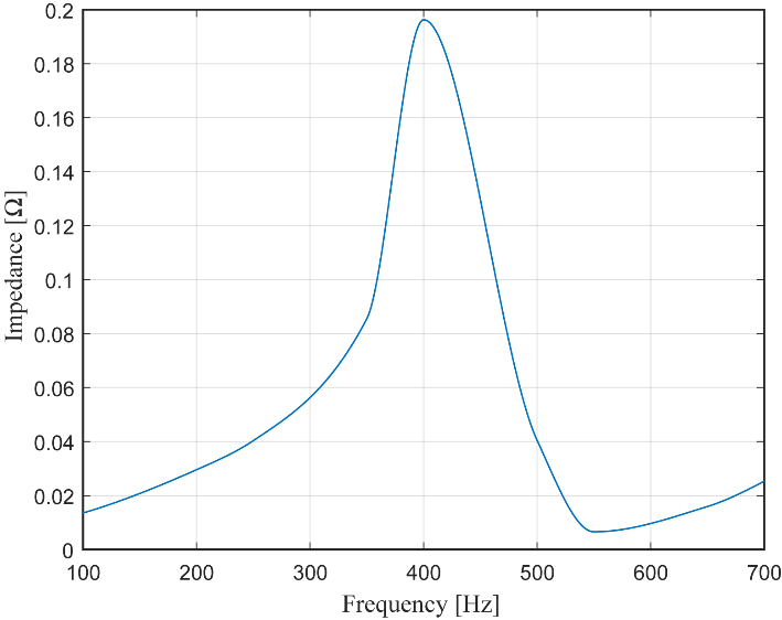 The distinct difference in the case of the 11th harmonic requires detailed studies as it involves a multi-inverter scenario, combined with the solar farm cable network and the supply system. In addition, there is also the possibility of some harmonic amplification leading to harmonic currents that exceed simple arithmetic summation. Considering these possibilities, a relatively simplistic study hypothesising possible resonance conditions was undertaken by carrying out impedance scans at the terminals of one inverter as the other inverters were added to the network one by one. It is however to be noted that such impedance scans require all active 11th harmonic sources are short-circuited in the network. This approximate study was conducted at one of the inverter output terminals with the cables associated with each inverter introduced one by one, but the corresponding inverters removed while the supply network connected. This scan represents any resonance conditions associated with the cable network. These impedance scans clearly demonstrated series resonance conditions at around the 11th harmonic, thus supporting a corresponding increase in the 11th harmonic current as the number of inverters connected was increased. As an example, Figure 11 gives the outcomes of the impedance scan at one inverter terminal considering the network containing the cable network of three inverters together with the supply system, which clearly shows the series resonance conditions at around 11th harmonic.