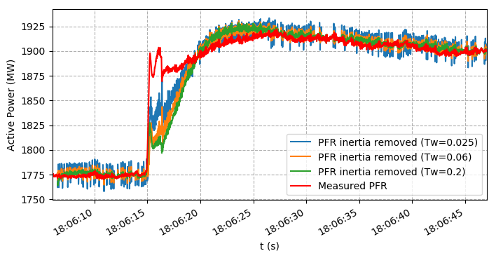 High-speed active power measurements of synchronous generators contain both the inertial response and PFR from the generators. Since inertia is endogenous to models based on the swing equation, the system PFR trace can only be used if the inertial components are removed first (otherwise the effects of inertia are double counted).