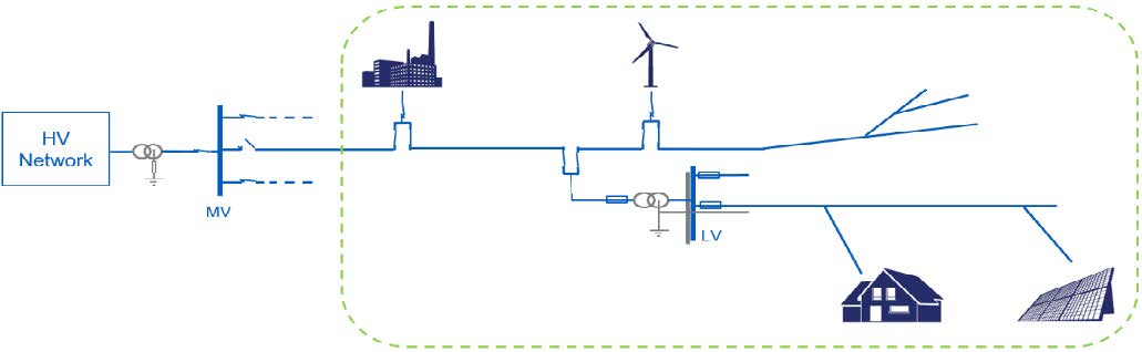 Until now, the possibility of bulk DER integration was not considered during protection scheme design. Indeed, conventional design assumes: i)The SCP is sufficiently high to ensure the operation of all HV, MV, and LV protections; ii) The power system is sufficiently stable to allow fault clearance at each voltage level; iii) Most of the generators are connected at HV level, so short-circuit current in MV and LV levels are unidirectional; iv) There is a very low risk of unwanted islanding situation of MV and LV feeders; v) The loss of production in MV and LV levels in the event of an HV fault remains very small.