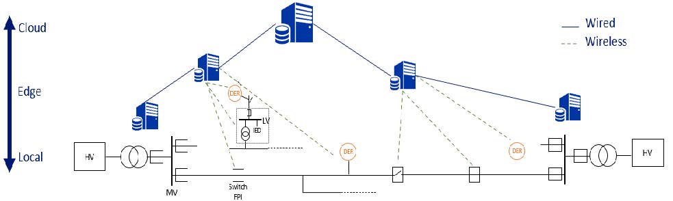 Third layer is the control layer where the data processing is performed, and decisions are taken. This layer is composed of the local controllers, deployed in the MEC level, and the master controller, deployed in the cloud level. FLISR functions are deployed at two different levels (MEC, or Cloud), according to two key parameters: i) the required latency; ii) and the level of situational awareness or the amount of data required for the function to operate properly.