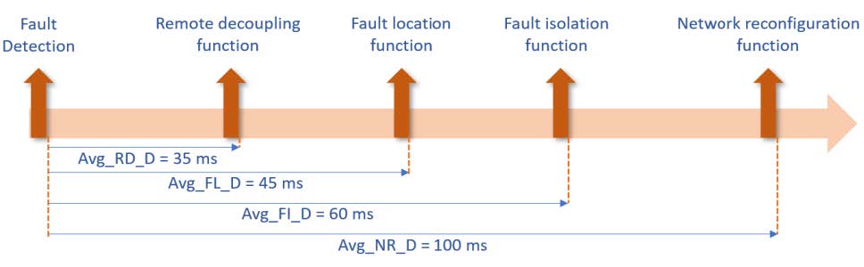- Average network reconfiguration delay (Avg_NR_D): the delay between the fault detection and the execution of the power network reconfiguration function.