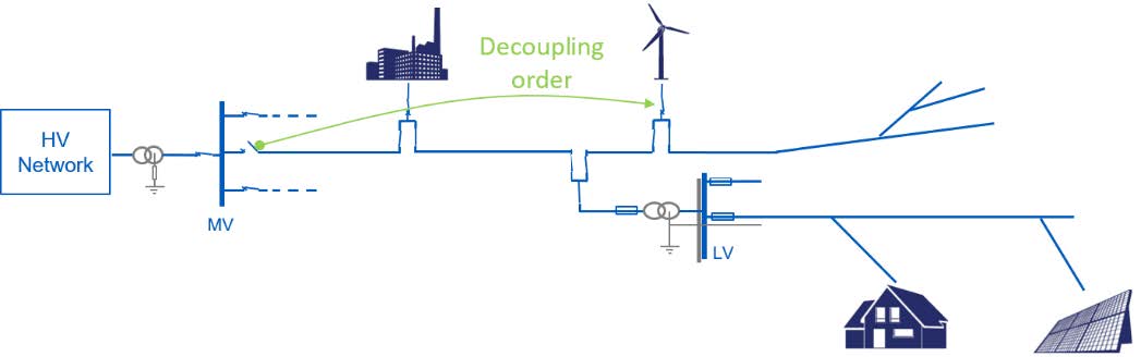 - the capacity to keep the DERs connected when they are necessary for the system, or conversely to disconnect them if their presence endangers the safety of goods and people, or even risks disturbing network devices such as reclosers.