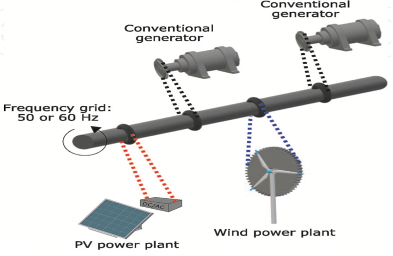 These agreements drove many countries to a transition towards so-called a modern power system that depends on an inverter-dominated system from the conventional generator-dominated system. As the level of variable renewable generation (VRG), is increasing, such as wind and solar photovoltaic (PV), the problem of variability and uncertainty arises, as they are non-synchronous, which means the absence of spinning synchronous generators. That leads to an unavoidable decline in the frequency response services. Consequently, the higher the penetration of VRG, the higher the frequency deviation [2].