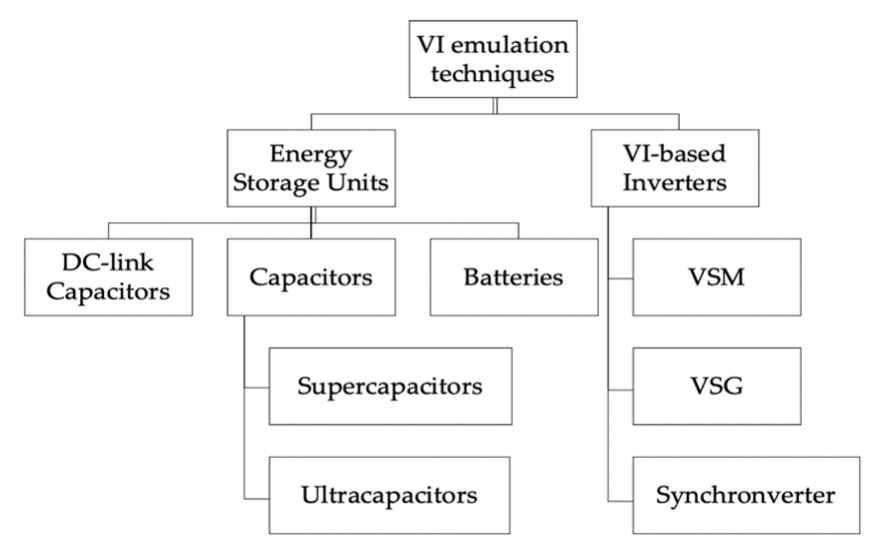 Regarding the stability concerns instigated by low system inertia because of high RESs penetration, new ideas for virtual inertia emulation, such as virtual synchronous generator or machine have been recommended to supply supplementary virtual inertia, allowing a high RESs penetration in generation mix. The virtual inertia is imitated using an advanced control facilitated by the inverters, which improves system inertia, damping properties, and frequency stability. The main idea behind the virtual inertia control is the derivative control that calculates the RoCoF to add an active power to the system during the contingencies.