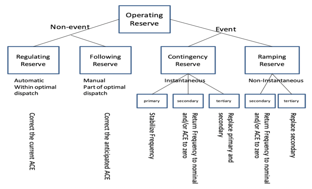 Figure 7 - Example of operating reserve categories and how they are related [16]