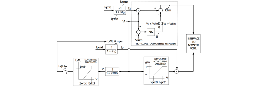 Figure 1 depicts the block diagram of the state-of-the-art renewable energy generator/converter model used in positive sequence simulation environments, namely REGC_A model. It is used to represent the converter interface with the grid and incorporates a high bandwidth current regulator. The main features of the REGC_A model are: