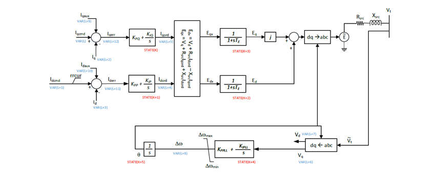 Figure 2 - Complete block diagram of positive sequence converter model developed by EPRI – REGC_C model