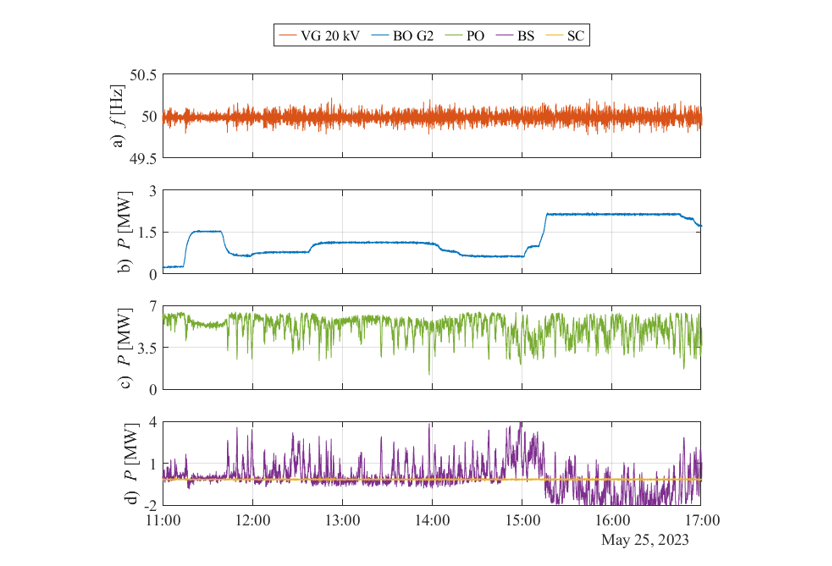 Interesting measurements from different operation examples have been obtained since the BS and SC were commissioned. This section describes a commissioning test of the BS, an unexpected outage of a hydro turbine, a sudden loss of all the power production and a few hours with unstable wind conditions.