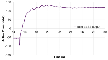 Figure 4 - IBR and BESS active power – loss of AC interconnector importing 185 MW