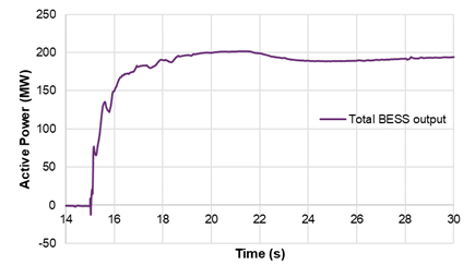 Figure 7 - IBR and BESS active power – trip of 200 MW generation within island