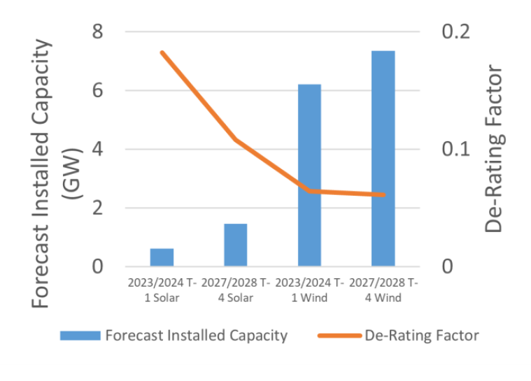 All of these effects reflect changing dynamic physical effects on the power system and the way each effect evolves and interplays with the other effects gives rise to the de-rating factors in a particular year. Reflecting the fundamentals of a reliable power system in long-term market signals is critical to pro-moting the necessary investment in the different technologies required to integrate massive amounts of variable renewables. In this way, storage, demand side units, interconnection are enablers of operation with ever greater levels of wind and solar and vice versa. De-rating factors are the key measure to incentivise the appropriate levels of investment in mutually beneficial technologies as we transition to-wards net zero.