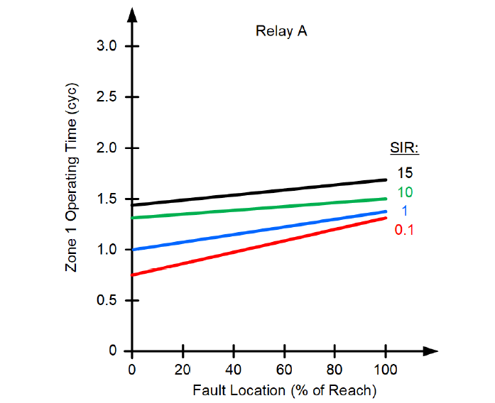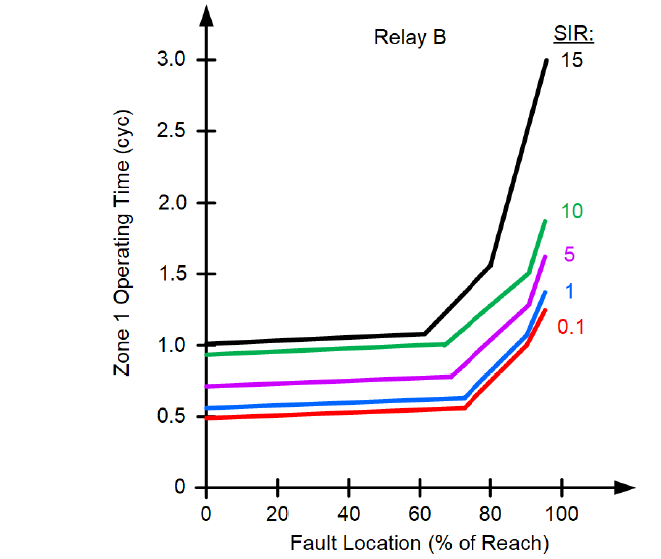 - By using the Zone 1 operating time curves published by the relay manufacturer, obtain the operating time (TOP) for the SIR value from Step 1 and the farthest fault location for which the operating time is published.