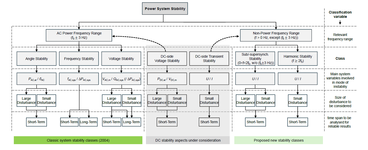 Figure 3 – Considerations on DC stability next to the proposed power system stability classes