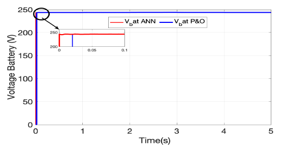 Figure 18 - The battery voltage optimized by the ANN and P&O methods