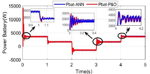 Figure 17 - The battery power optimized by the ANN and P&O methods