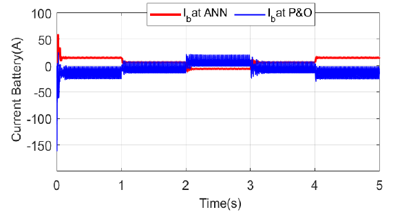 Figure 19 - The battery current optimized by the ANN and P&O methods
