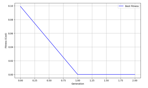 Results obtained using proposed model is depicted in the subsequent section. Convergence curve obtained by the proposed model is illustrated in figure 18. Likewise, Figure 18 showcases the training loss, validation loss of the proposed model over 10 epochs. Convergence curve shows how the fitness cost evolve across generation during optimization process, x axis denotes the number of generations over time, where it spans from 0 to 2 generations, showcasing that the optimization converged very quickly. Likewise, y axis represents the fitness value during the optimization process. The flat line after generation 1 indicate the algorithm stability. Hence, the curve demonstrates that the optimization process is efficient and fast, requiring one generation to find the best solution