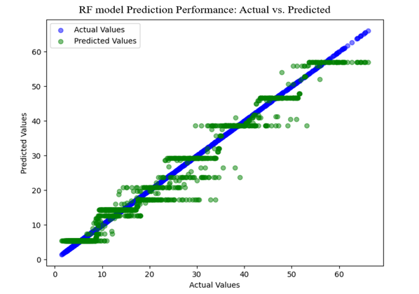 Like DT, outcome for Random forest is demonstrated in the subsequent section. Figure 14 shows the regression performance for actual vs. predicted for RF.