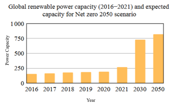 Figure 1 - Total Renewable power capacity and expected capacity for Net zero [9]