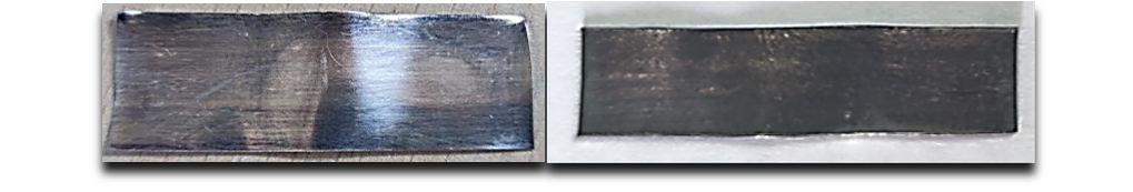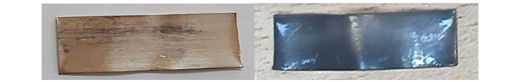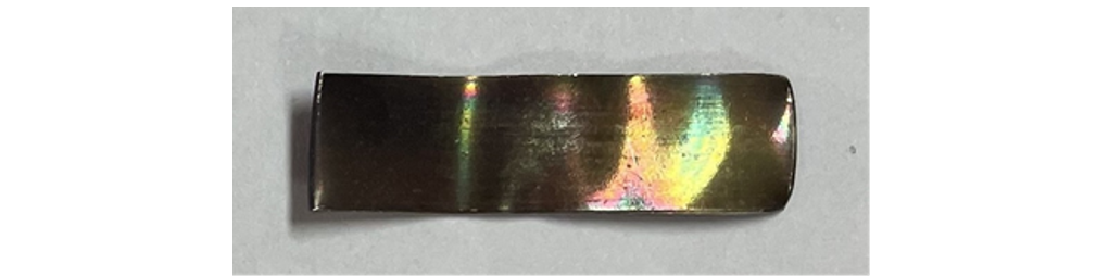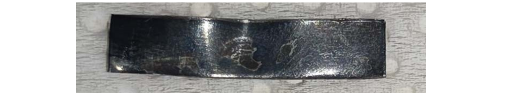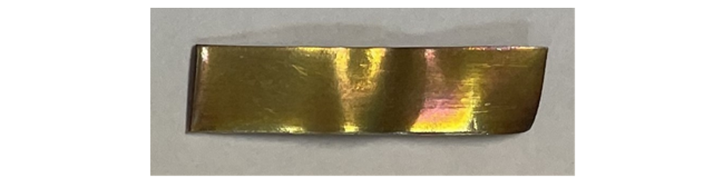 Figure 5 - Silver strip after modified ASTM D1275-15 corrosion test (72 hours at 150°C) (Energy dispersive X-ray spectroscopy (EDX) = 0.91 – 1.24 wt. % sulphur)