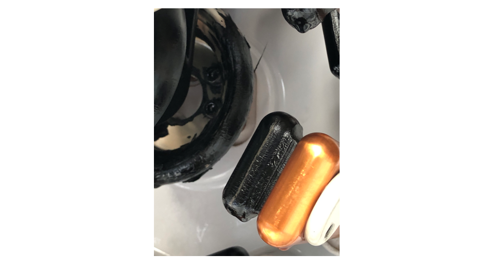 Ten ester-filled transformers at lower voltages, 20 kV and 30 kV, that had seen between one and fifteen years in service were inspected by a member of the TF and it was reported that nine of them had blackened coating in the de-energized tap-changers (DETC) (Fig. 7). The ester from each transformer was tested according to ASTM D1275 and, although several strips were slightly discoloured, two samples were positive for corrosion according to the Scanning Electron Microscopy (SEM)-EDX.