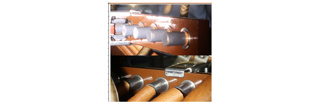 During some of these inspections, blackened surfaces were noticed on the silver-plated OLTC selector switch contacts in the main tank compartment (Fig. 4). These transformers have a resistor-type diverter switch OLTC which has its own oil compartment.