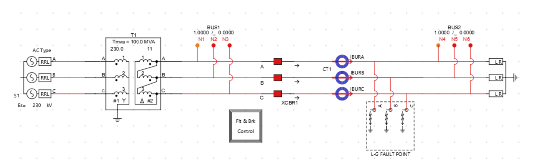 The substation feeder setup is developed in developer software of the real time digital simulator as shown in Figure 3. This setup is used to study the cause-effect relationship of faults and cyber attacks interacting with real cyber layer devices. Scaled-down voltage and current signals from the feeder are sent out via the analog output interface of the simulator. The CB in the feeder (XCBR1) operates in two modes. It can operate as a conventional breaker which open/close based on the trip signal received from the MUIED. The digital interface is configured to receive the trip signal from the MUIED. Additionally, XCBR1 can mimic the operation of a breaker IED which operates with GOOSE received from P&CIED. The network interface of the simulator is configured to subscribe to the GOOSE trip signal of the P&CIED 1 and to publish the status of the CB as GOOSE messages.