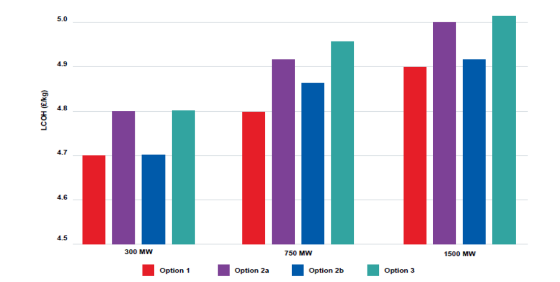Figure 3 - LCOH range for contract options using 2030 modelled constraints profile