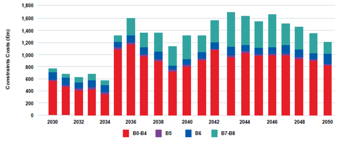 Figure 2 - Total constraint cost between 2030 and 2050 for boundaries B0 to B8