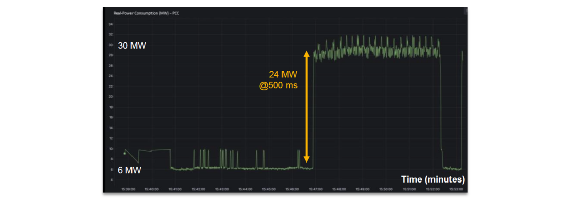Figure 1 – Real power at the building level in an AI-driven data center [4]