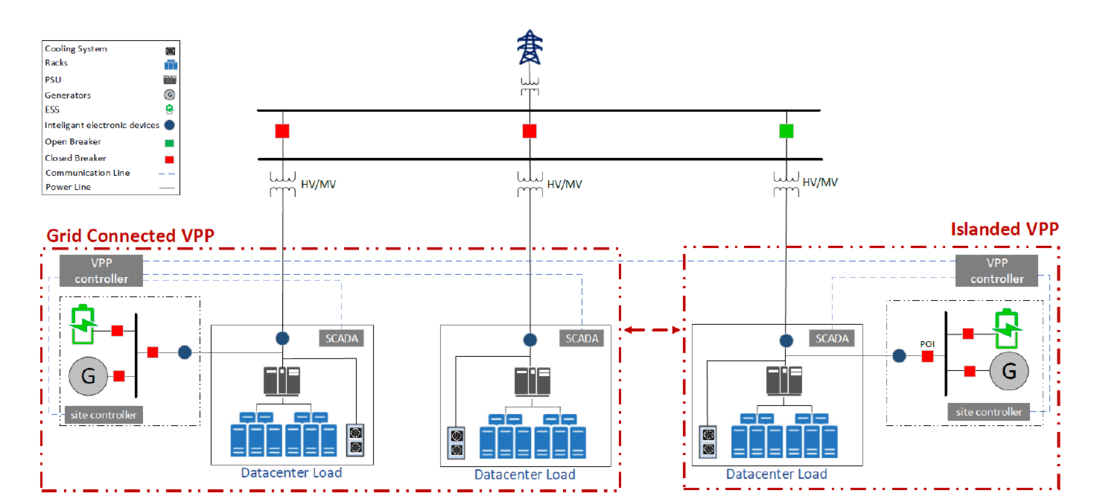 An embedded VPP can play a vital role in managing large data center loads while optimally the use of OER assets. It enhances the reliability of data center, reduces grid congestion, and enables participation in electricity markets. By operating within a single, synchronously connected electrical grid, the VPP can deliver unified grid services, across distribution, transmission, and/or market levels.