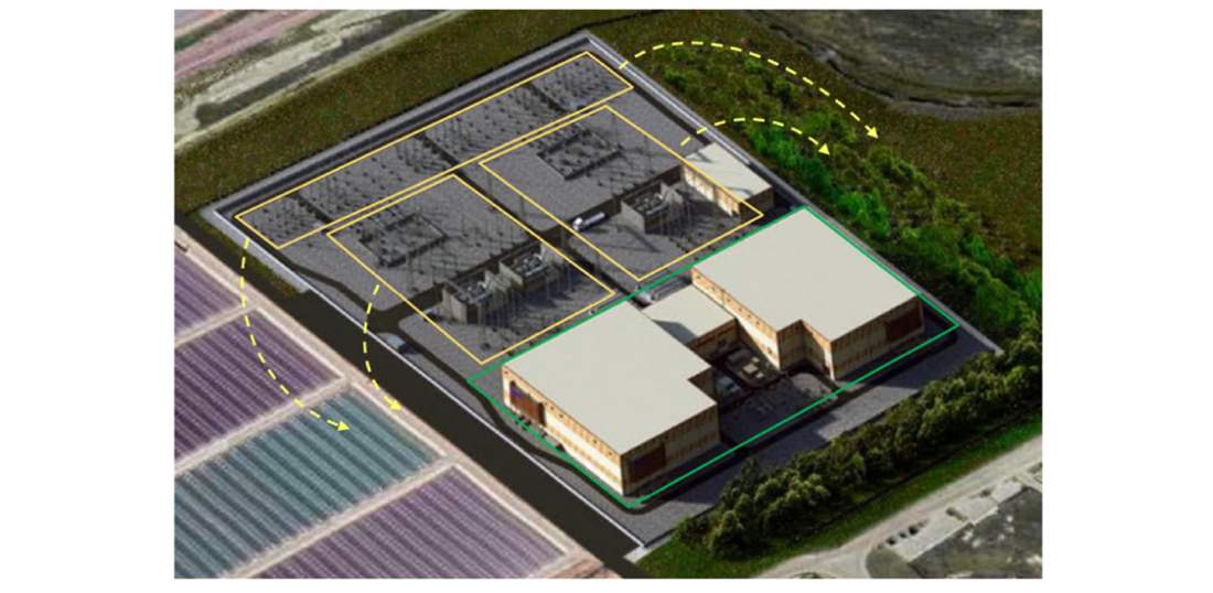 - Building arrangement from the AC terminals of the converter up to the DC cables and control building as shown with green boundary in Figure 2:
