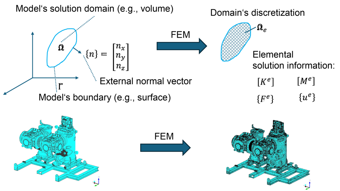 Classical mathematical models are frequently too complex to solve exactly, requiring approximative solutions. The Finite Element Method (FEM) addresses this by simplifying the model into a mesh of finite elements and nodes, allowing for an approximate solution.