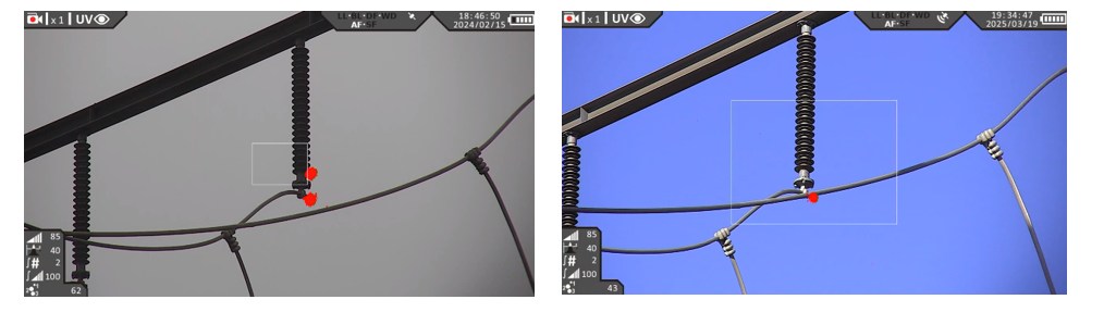 In some instances, the UV camera also detected inadequate corona protection of the hardware. Furthermore, it revealed poorly designed protective devices that were contributing to audible noise and continuous discharge activity.