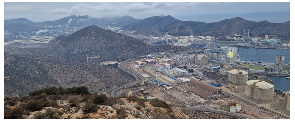 Figure 3 - Petrochemical factory close to hills and Mediterranean Sea. Transmission line goes into substation within the plant