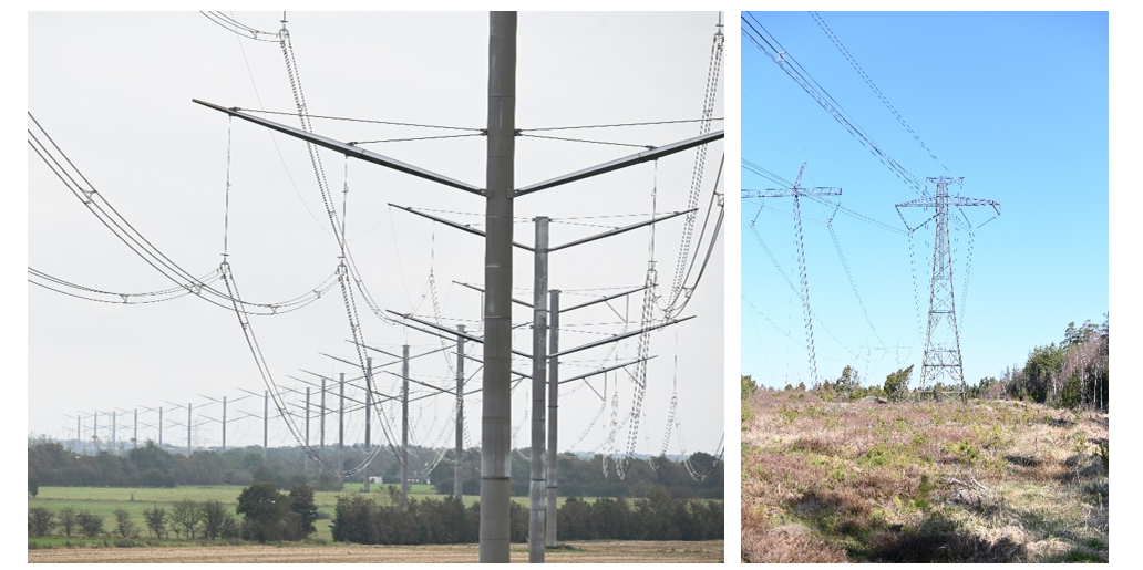 Figure 4 - Left: 420 kV double circuit transmission line in agricultural area. Right: 500 kV DC line in forest area