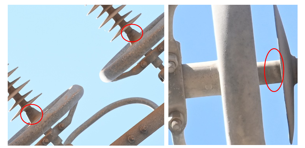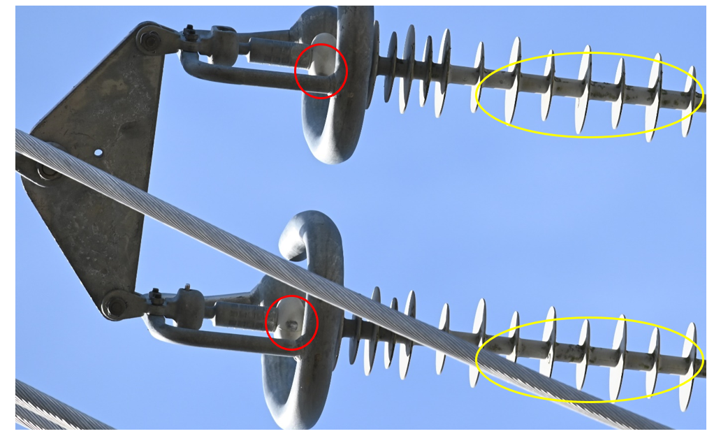 Minor handling issues were also discovered, with marks on the insulators originating from the protective devices during installation, as shown in Figure 6.