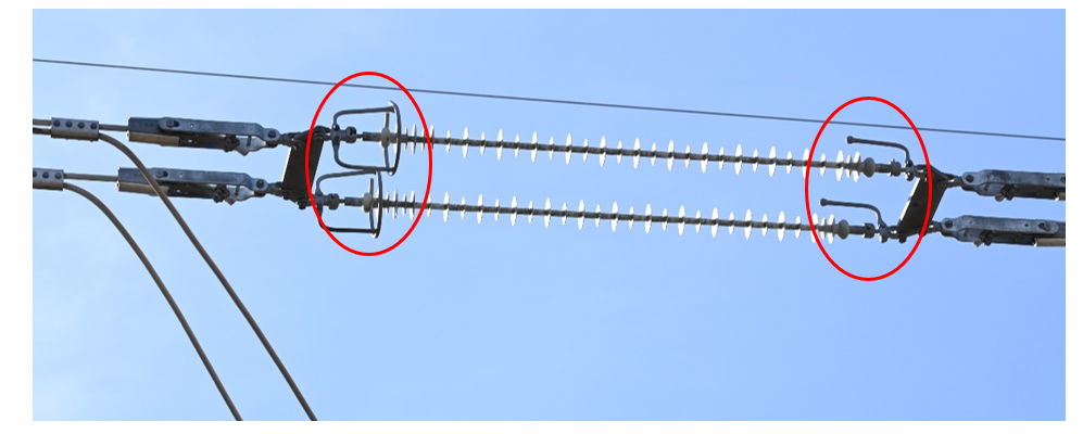Figure 10 - Difference of protective devices at 420 kV transposition tension string marked with red ovals