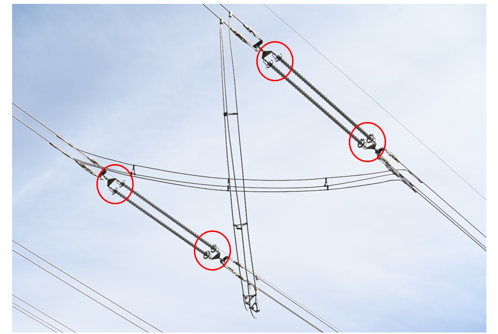 Figure 9 - Difference of protective devices at 123 kV transposition tension string marked with red ovals