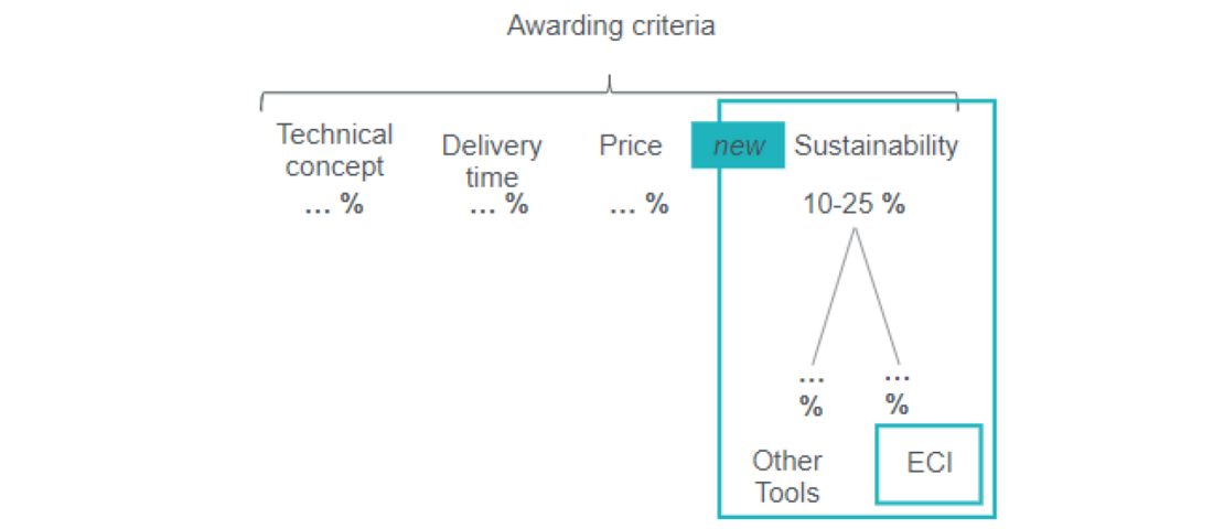 - An incentive scheme offers a less risky way of incentivizing ECI reductions as there is no requirement for a level playing field or distinctiveness of the criterion. It maintains a noticeably clear relationship between measure and cost. It is an effective way to gain experience with ECI calculations and reduction measures. However, there is also no market mechanism for effectively pricing in sustainability measures and hinges heavily on trust and transparency. It works best for framework agreements.