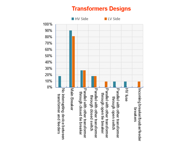 Main breaker is the most common design practice used by the respondents on the HV and LV sides of transformers. Fig.3. shows a comparison of the transformers HV and LV design practices.