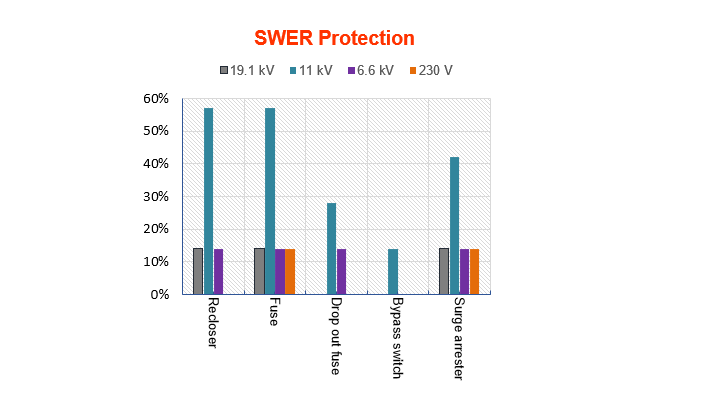 The survey questionnaire was designed similar to the international surveys which started in US in 1980s and resulted in a series of publications [1] - [5]. Some specific questions were added to the questionnaire that are relevant to New Zealand like Single Wire Earth Return (SWER) system. Responses came from 11 out of the total of 29 distribution companies, representing 80% of all distribution utility consumers. A detailed report was released in 2014 based on the information provided by the respondents [6]. Fig, 1 summarizes different protection devices used in the New Zealand distribution system.