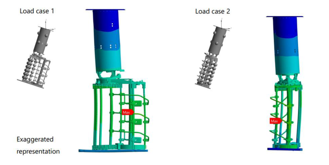 One of the biggest topics, when it comes to transformers for floating substations is the mechanical strength of the steel-parts, like tank and cover, radiator support structure, support structure of the conservator and many more. The size and weight of the most parts makes it impossible to put them on a shaker table to check their fatigue capabilities as we did for Windpower transformers. Our GIS/switching colleagues also verified their simulations, material models and analyses by tests. So, with the support from our experienced colleagues, we developed our fatigue assessment including FEM simulations to get the hotspots to verify.